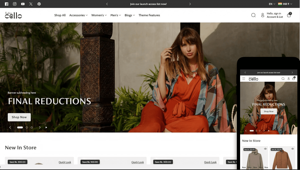 | Slideshow | Yes, rotating banners for promotions or featured collections, enhancing visual engagement. |