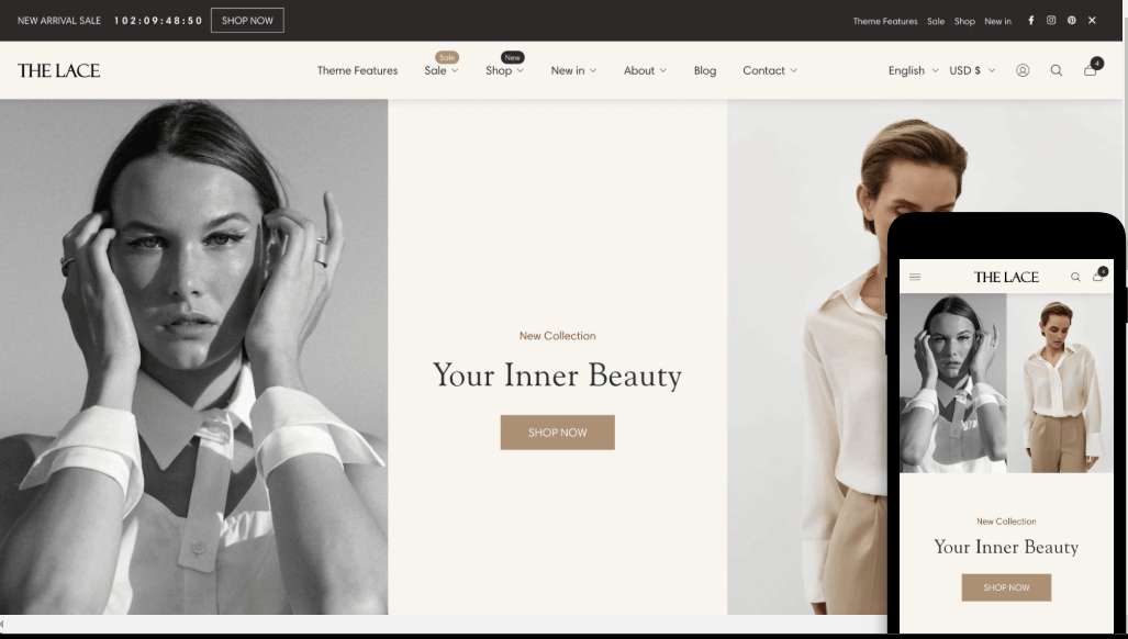 Couture is an excellent theme for fashion brands that prioritize visual storytelling, engagement, and seamless navigation. Advanced features place it at the top of the list for stores that need to be outstanding in the competitive fashion space.