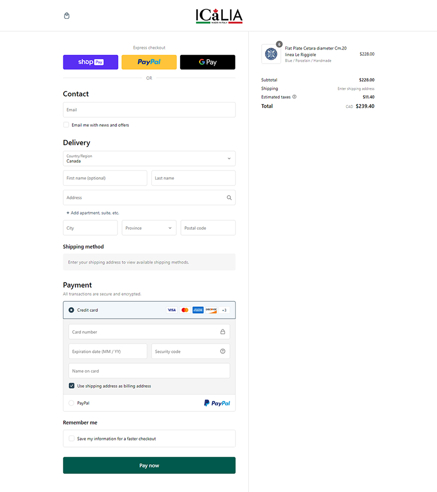 - Multiple Payment Options: Facilitating smooth transactions, our Shopify web design integrates multiple payment options, including Shopify Pay and PayPal, catering to the diverse preferences of Icalia Tableware’s clientele.